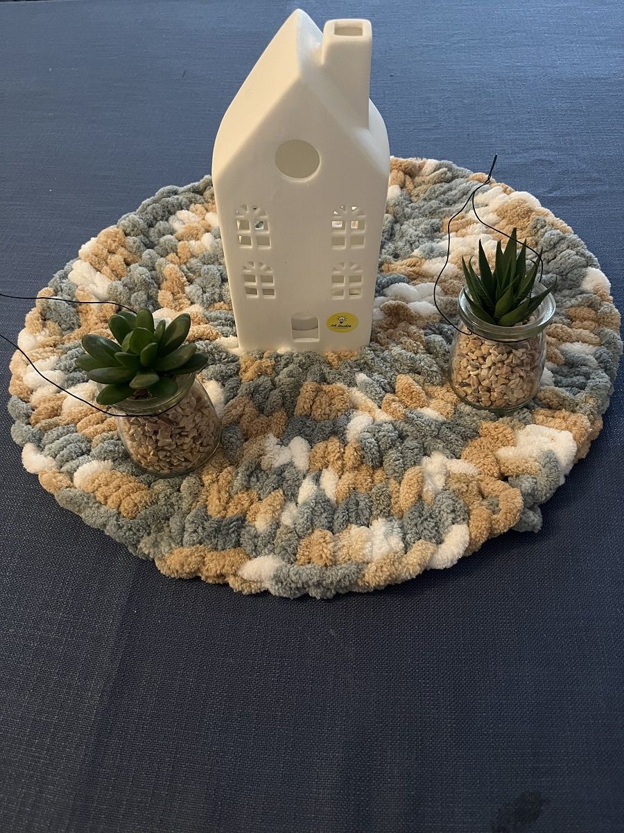 Dabei wird ganz ohne Nadeln nur mit den Fingern gestrickt.