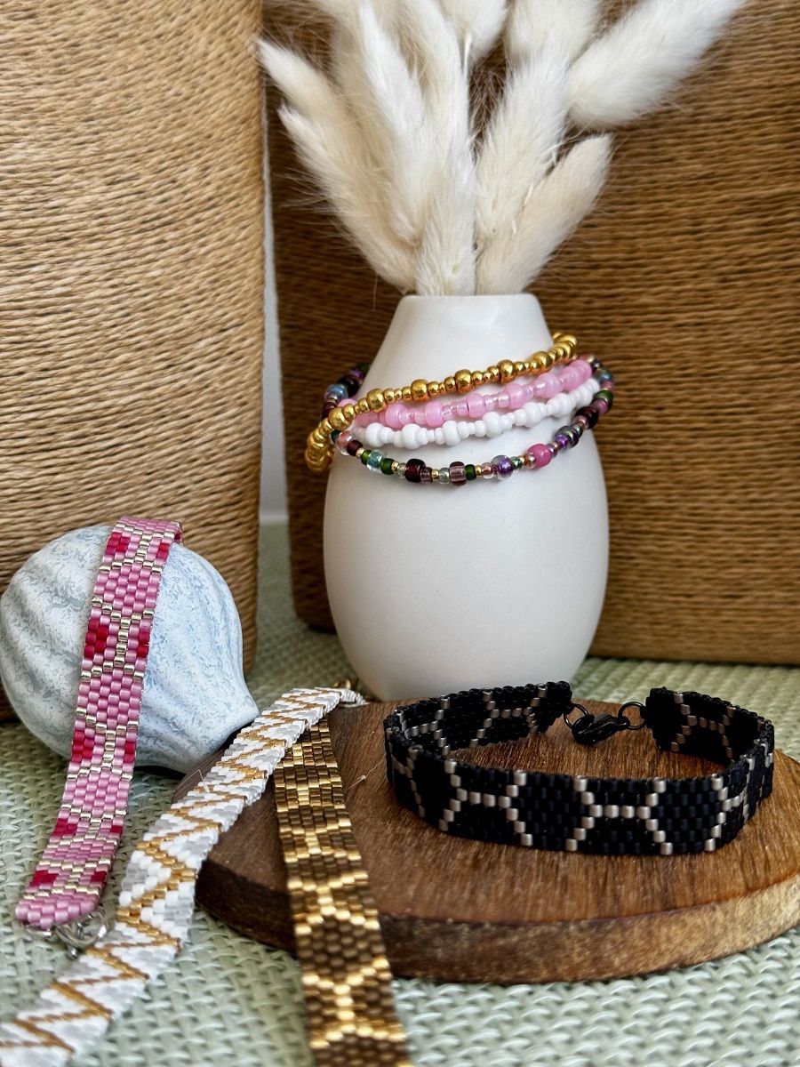 Materialien (Perlen, Fäden, Verschlüsse) werden im Kurs bereitgestellt.