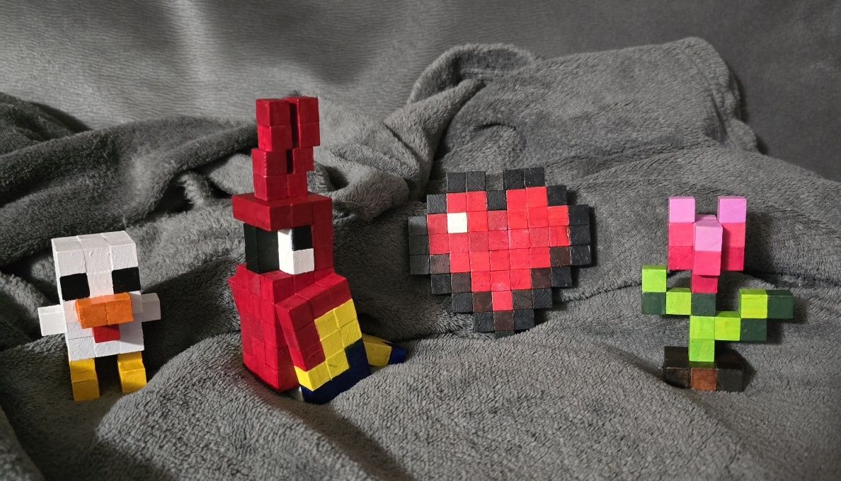 Wir gestalteten aus kleinen Holzklötzchen unsere eigenen Mini-Minecraft-Figuren.