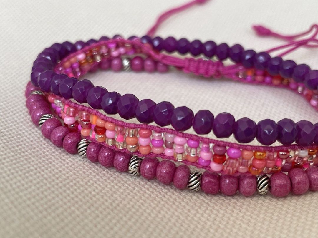 In diesem Workshop gestalten wir gemeinsam drei individuelle und farblich aufeinander abgestimmte Armbänder aus hochwertigen Glasperlen: