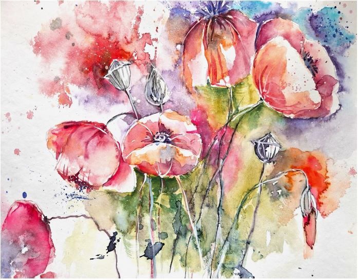 Bitte bringen Sie auch mit: 2 Wasserbehälter, altes Tuch, Aquarellblock A4 oder A5, Aquarellfarbe, Pinsel (kann alternativ gestellt werden)